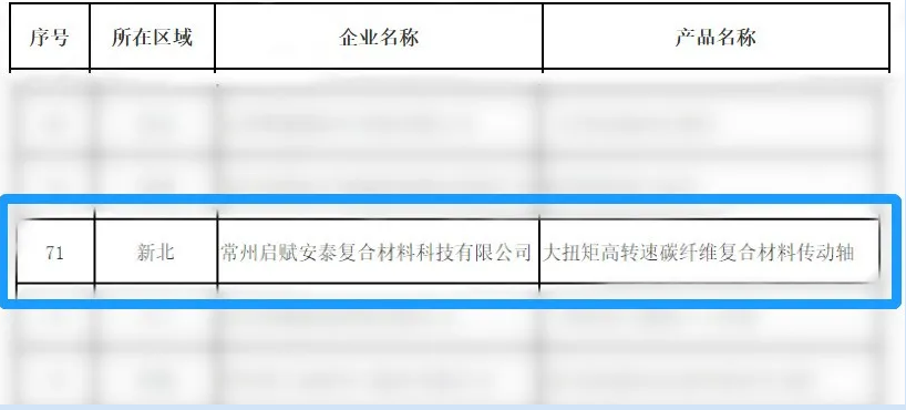 2021.12.31近日,常州市工信局对2021年常州制造创新产品拟认定名单进行公示,安泰复材“大扭矩高转速碳纤维复合材料传动轴”成功入选。